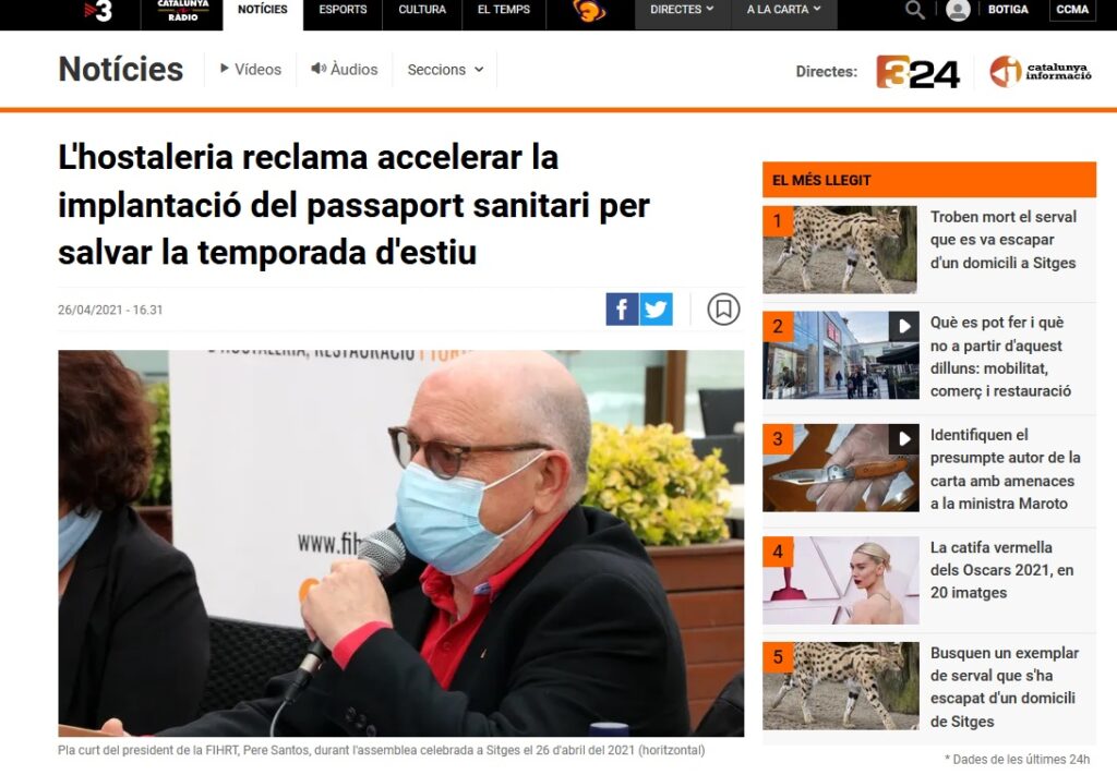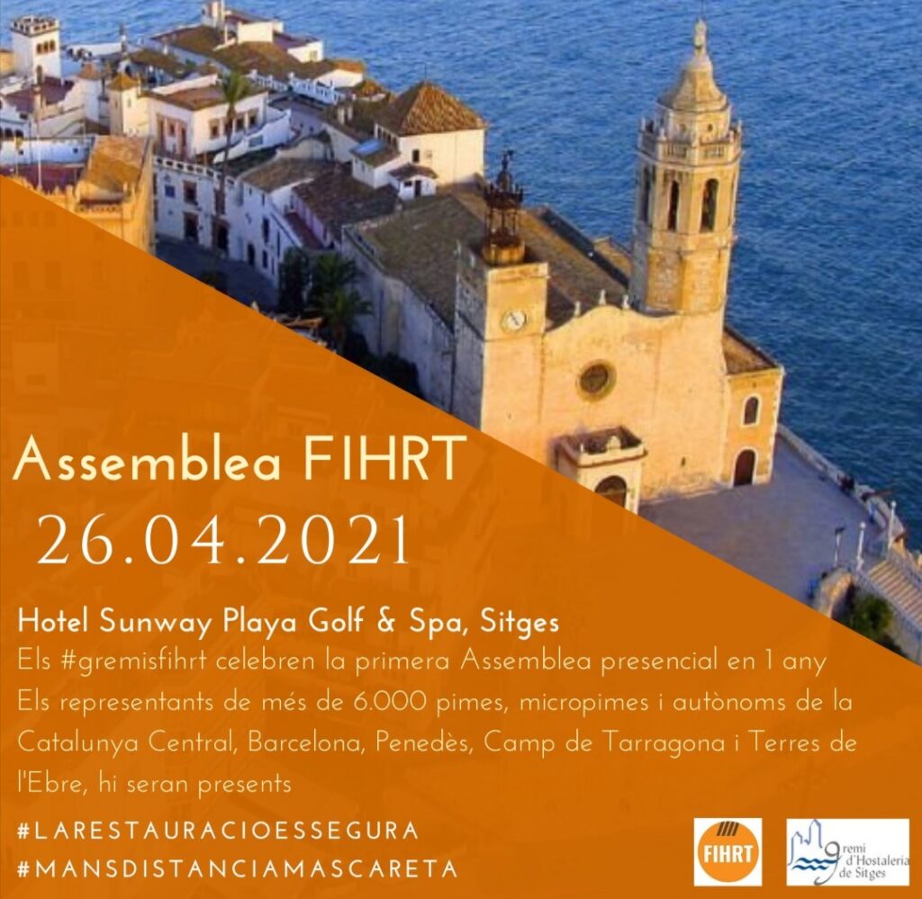 L’ Assemblea General de la FIHRT, reunida a l’Hotel Sunway Playa Golf de Sitges, a la vista de l’actual situació del sector de l’hostaleria, la restauració i el turisme, manifesta un cop més que cal reactivar el sector obrint als vespres i fent efectius els ajuts que des de finals del 2020 no arriben.