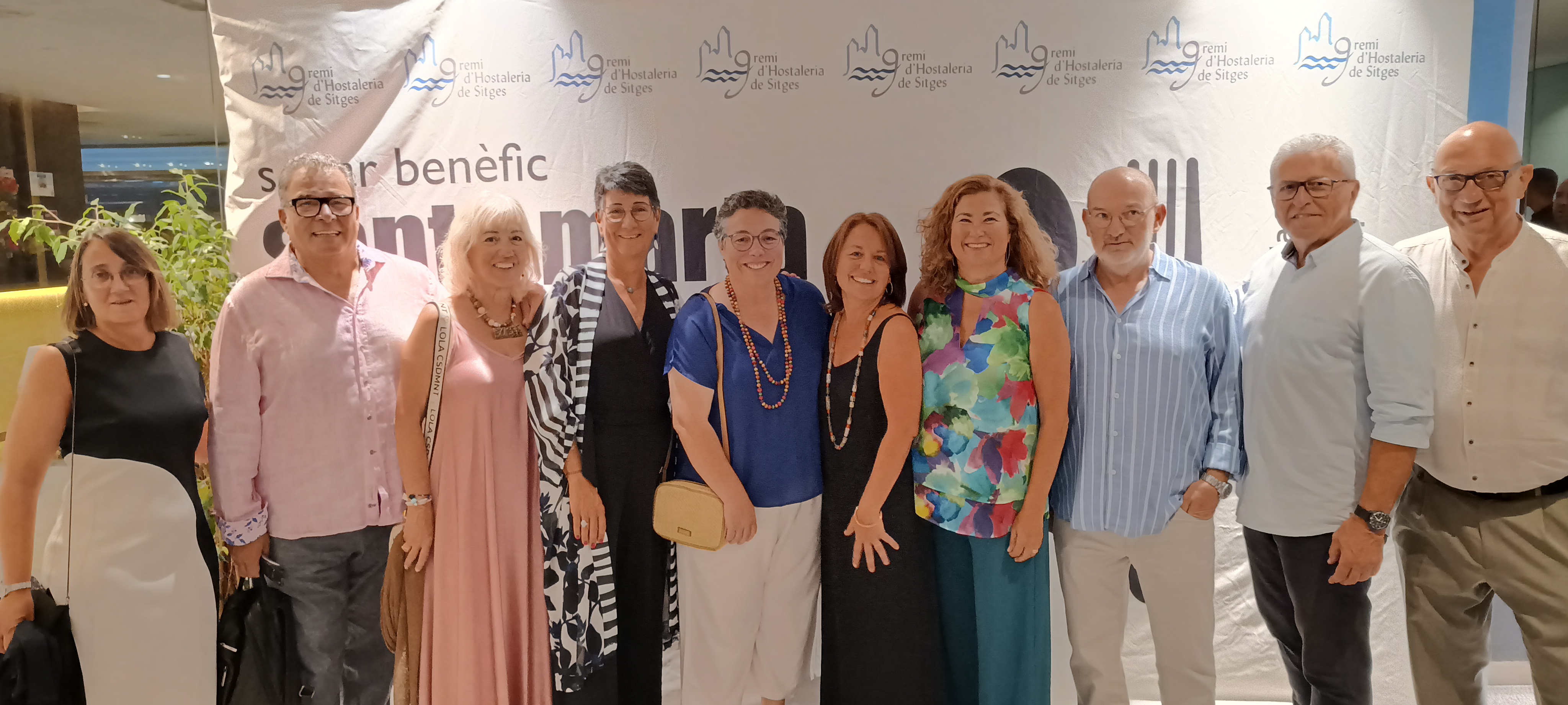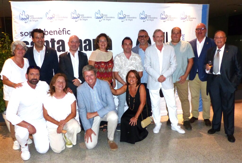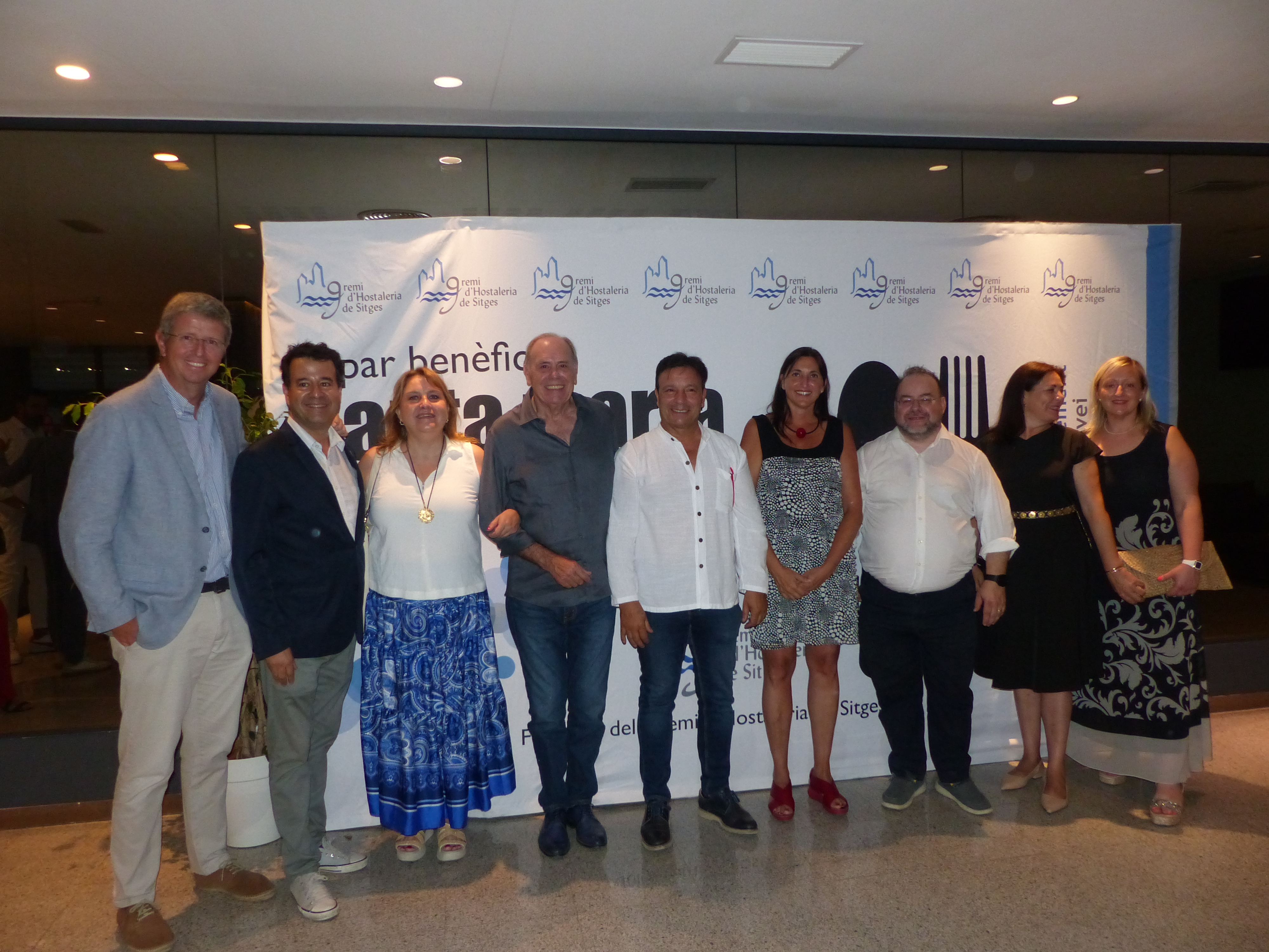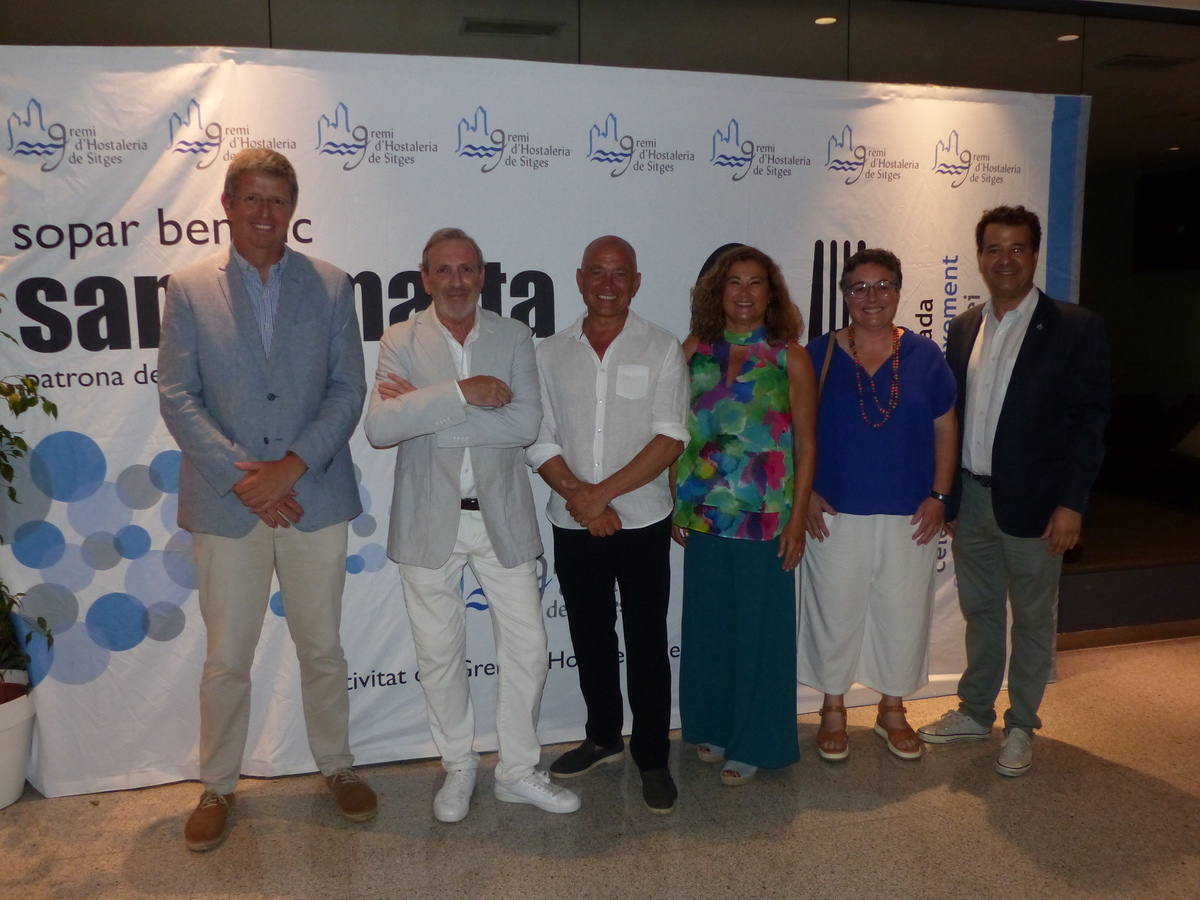 L’alcaldessa de Sitges, Aurora Carbonell amb el president del Gremi d’Hostaleria de Sitges, Oskar Stöber, Patrick Torrent, Director executiu de l’Agència Catalana de Turisme, diversos membres de la Junta Rectora, regidors de turisme, via pública i cultura, tots acompanyant Jordi Sans administrador de la fundació de l’hospital homenatjat al sopar Benèfic, amb el suport de la Generalitat de Catalunya
