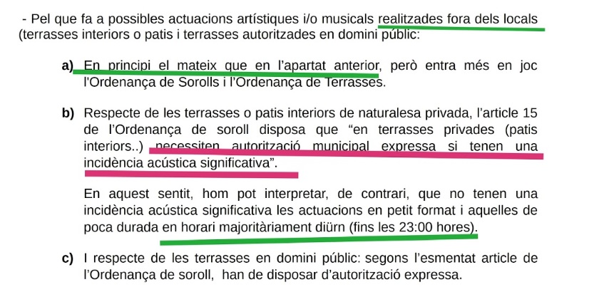 – Pel que fa a possibles actuacions artístiques i/o musicals realitzades a dins els locals: