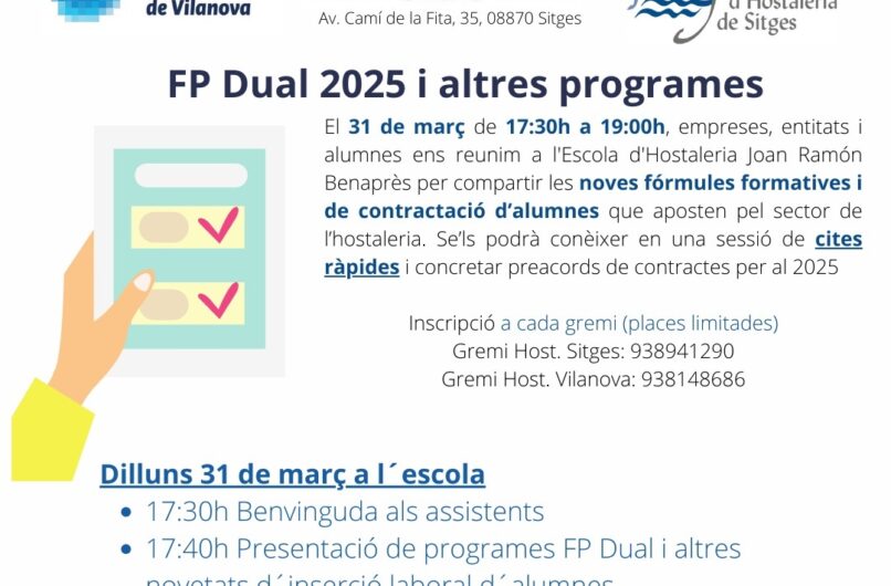 Després de la cancel·lació de la jornada inicial del passat 17 de març per vaga de trens, tornem a llançar l’edició el proper 31 de març de 2025 de 17:30h a 19:00h en aquesta segona edició, empreses, entitats i alumnes ens reunim a l’Escola d’Hostaleria Joan Ramón Benaprès per compartir les noves fórmules formatives i …