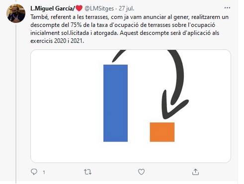 - la reducció del 75% de la taxa de terrasses de 2020 i 2021, davant el import de 2019