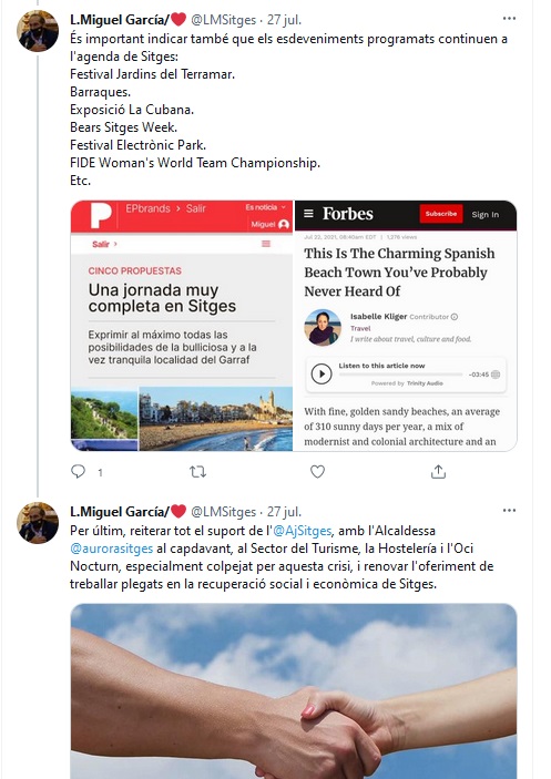 Després de la reunió, via xarxes socials, el regidor de Turisme, Luis Miguel Garcia va registrar els seus compromisos després de la qual parlat en la reunió (aquí us deixem el fil) destacant: