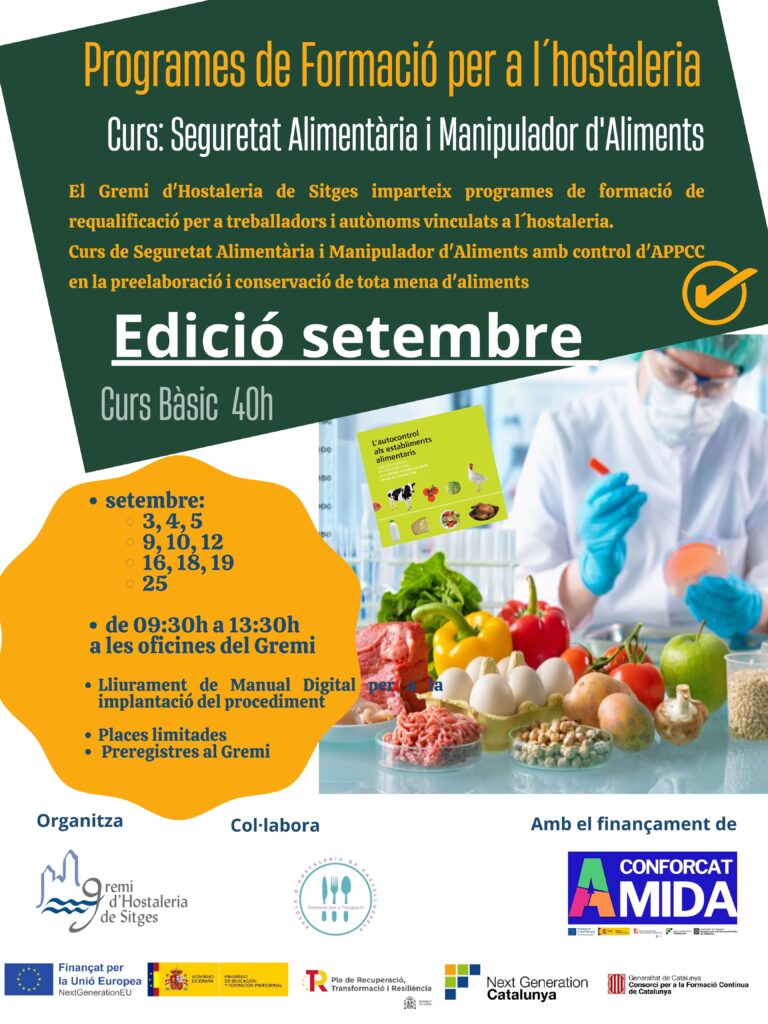 Aquest curs de Seguretat alimentària i manipulació d’aliments està dirigit a professionals de la hostaleria de Sitges i Garraf.