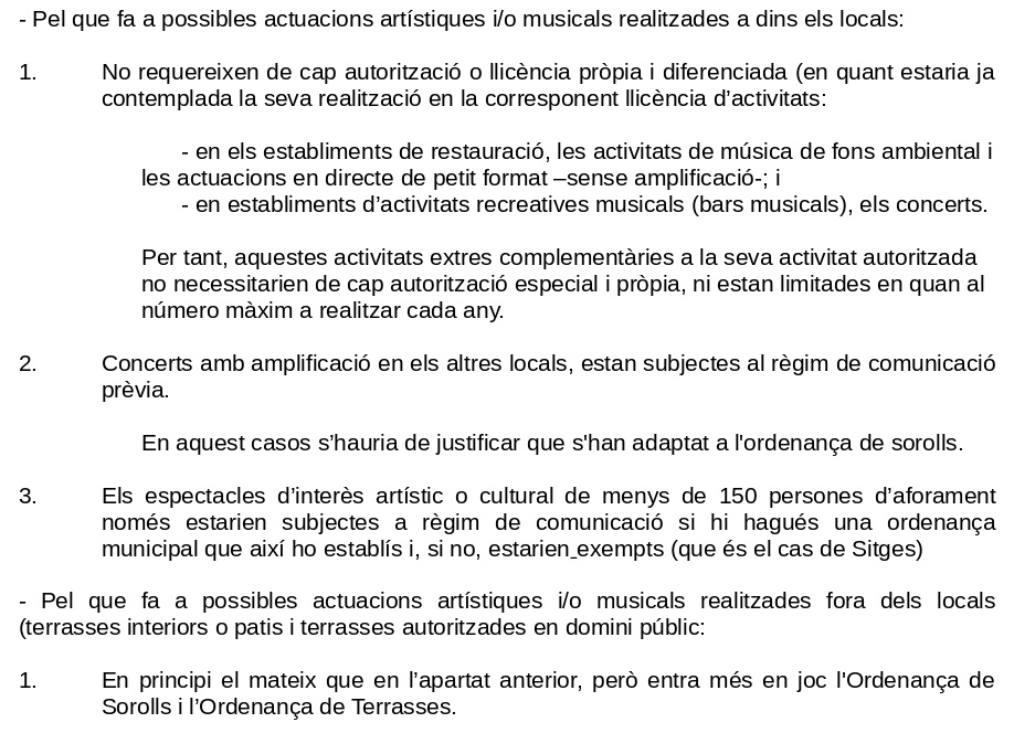 PRIMER.- AUTORITZAR a les terrasses i patis interiors de titularitat privada i a les terrasses autoritzades al domini públic dels establiments hotelers, de restauració i recreatius, la realització d’actuacions musicals en viu o d’altres espectacles sense incidència acústica significativa: