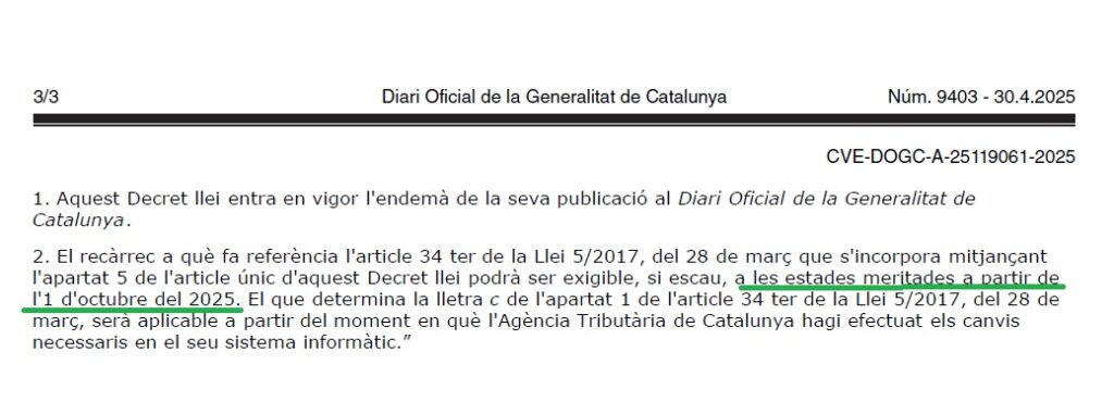 El govern ho ha justificat pel que fet que la convalidació per part del Parlament no es pot produir abans d’aquesta data, després que hagi pactat amb ERC que, a canvi d’aprovar la norma en el proper ple, aquesta es tramiti com a projecte de llei, i que no entri en vigor fins que no es completi tot el tràmit i s’aprovi el text definitiu. Un text, a més, que sortirà de la convergència amb una proposició de llei que els republicans presentaran amb la seva pròpia proposta.
