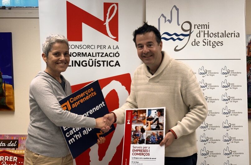 El Gremi d’Hostaleria de Sitges i el Centre de Normalització Lingüística (CNL) de l’Alt Penedès i el Garraf, per mitjà de l’Oficina de Català de la població, han acordat de portar a terme diverses actuacions per impulsar la llengua catalana en un sector tan representatiu per a Sitges com és el de la restauració i l’hostaleria. Entre aquestes actuacions, destaca la posada en marxa d’una campanya que es concreta, d’una banda, en el desplegament del projecte Comerços aprenents, i, de l’altra, en la millora de la qualitat lingüística en la comunicació escrita dels establiments del sector.
