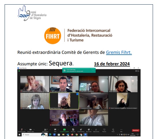 El comitè de gerents de Gremis de la Firht ha mantingut una reunió d’urgència on es comparteixen les darreres novetats d’actuacions de reunions del sector en relació a la sequera amb l’ACA i demanant la presència del sector a les taules de treball.