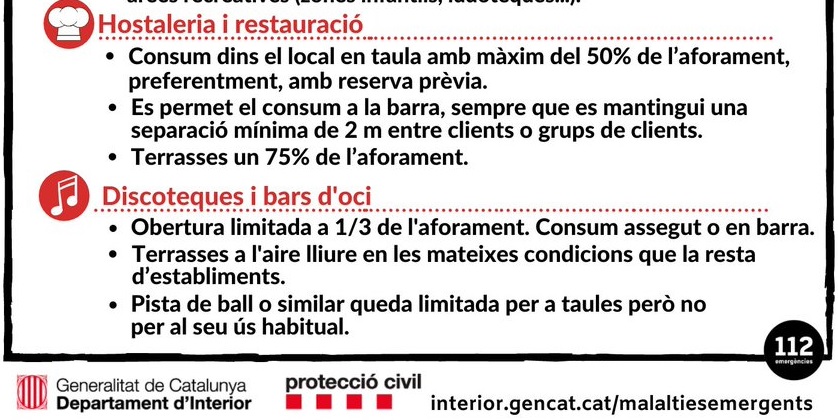 Mentrestant i a l’espera de concreció en cada sectorial us deixem la resolució PROCICAT que intruduce el 1,5m com a distància mínima o els 2,5m2 d’àrea personal