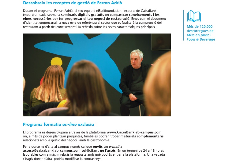 I breu, en resposta a la urgència de revisar processos, proveïdors i metodologies del negoci, es farà un taller per a agremiats informant de les novetats per a aquest any