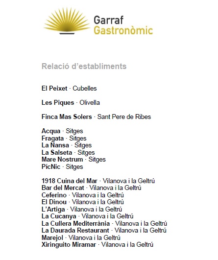 Mentre tant el Garraf Gastronòmic segueix coent a foc lent i ja es prepara la 9a edició de la cuina del Garraf, reeditant els èxits de fa 40 anys però adaptats a el segle XXI.
