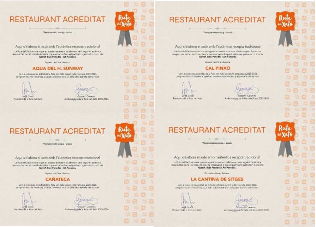 La Ruta del Xató és una experiència que va molt més enllà del bon menjar i del bon beure, és una ruta gastronòmica, estretament lligada als vins de la DO Penedès i a un plat únic al món, el saborós xató. En la seva 29a edició inclou més de 200 propostes d’oci, cultura, natura, platja, enoturisme, espectacles…, festivals, museus, senderisme, degustacions, concursos, xatonades populars, escapades temàtiques i altres activitats que et permetran gaudir-ne en parella, en família o amb d’amics. Els millors restaurants de la regió t’ofereixen el seu talent culinari. Vine a Calafell, Cunit, el Vendrell, Sitges, Vilafranca del Penedès i Vilanova i la Geltrú i comença a viure l’experiència de la Ruta del Xató.