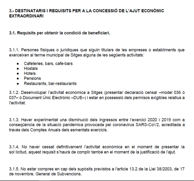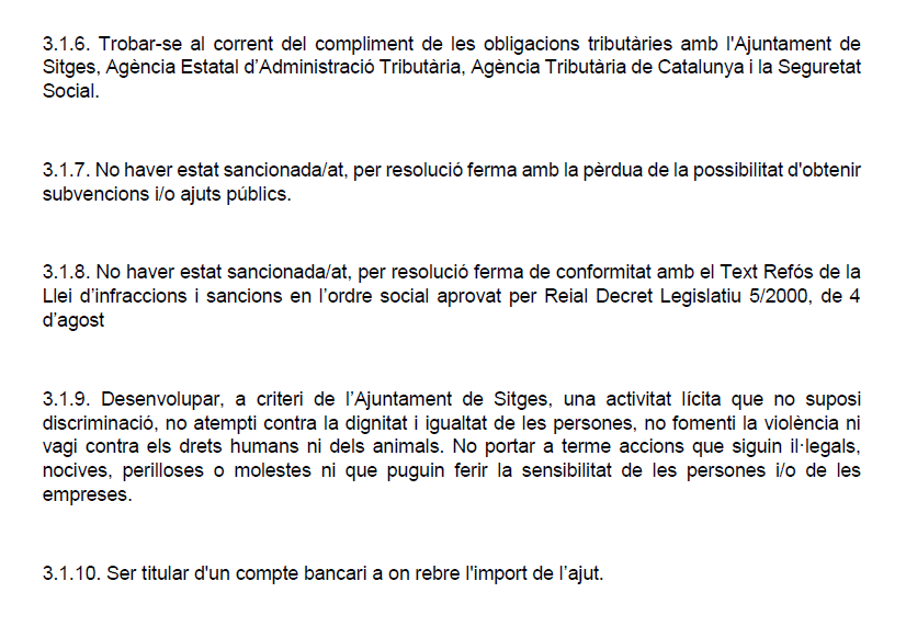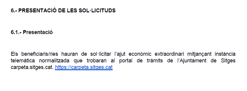 Ajornat el termini per presentar les sol.licituds a través d’una instància general presentada amb certificat digital a l’Ajuntament de Sitges per a obtenir una ajuda per a sufragar part de la disminució dels ingressos durant els tancament per COVID19.