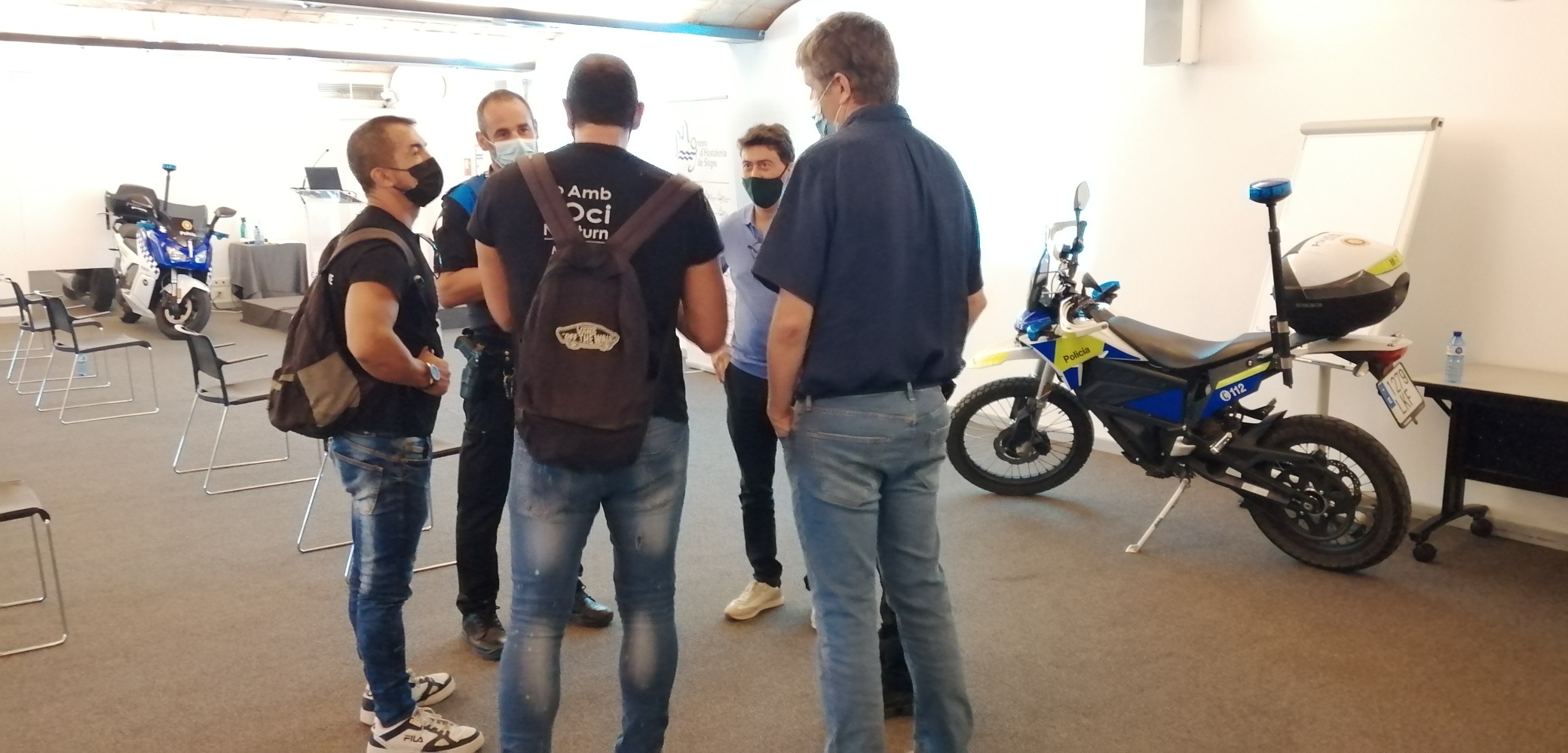 A l’àrea de Policia Local de Sitges, els assistents van gaudir de l’contacte directe amb les noves motos elèctriques de el cos. Motos, ràpides, àgils de manejar i no contaminants.