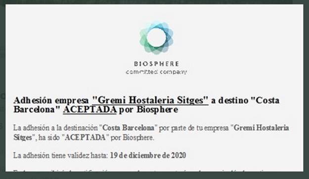 Como herramienta de mejora de los procesos y asegurar la máxima participación de las empresas se está trabajando, desde el Gremi con diferentes regidurías del ayuntamiento de Sitges, para que acompañen a los establecimientos vinculados al turismo que decidan adherirse al plan Biosphere en 2020 y doten distinciones de algún tipo (beneficio fiscal, reducción en tasa de basuras, reposición de los elementos necesarios para reciclar) y así entre todos lograr el distintivo GOLD Biosphere destination que sería tan beneficioso para nuestra localidad y garantizaría una mejor gestión de residuos y eficiencia del reciclaje, inclusión de productos del  Territorio, mantenimiento del espíritu local frente franquicias internacionales, intercambio cultural basado en la diversidad, tolerancia y entendimiento y sobre todo cuidado del medioambiente.