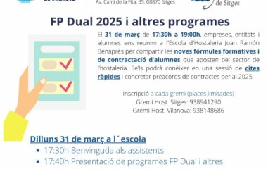 Després de la cancel·lació de la jornada inicial del passat 17 de març per vaga de trens, tornem a llançar l’edició el proper 31 de març de 2025 de 17:30h a 19:00h en aquesta segona edició, empreses, entitats i alumnes ens reunim a ...Rebuig del Gremi d’hostaleria de Sitges a l’increment de la taxa Turística