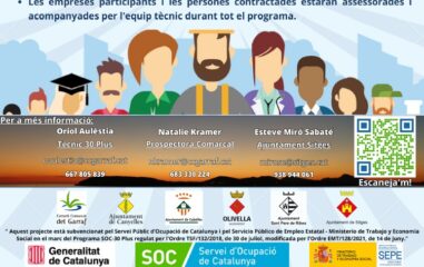 Participa en el programa 30PLUS, programa que subvenciona la contractació de persones empadronades als municipis de Canyelles, Cubelles, Olivella, Sant Pere de Ribes i Sitges. Subvenció fins a 11.340€ per contracte. Us convidem a ...- 23 de Febrer de 2024