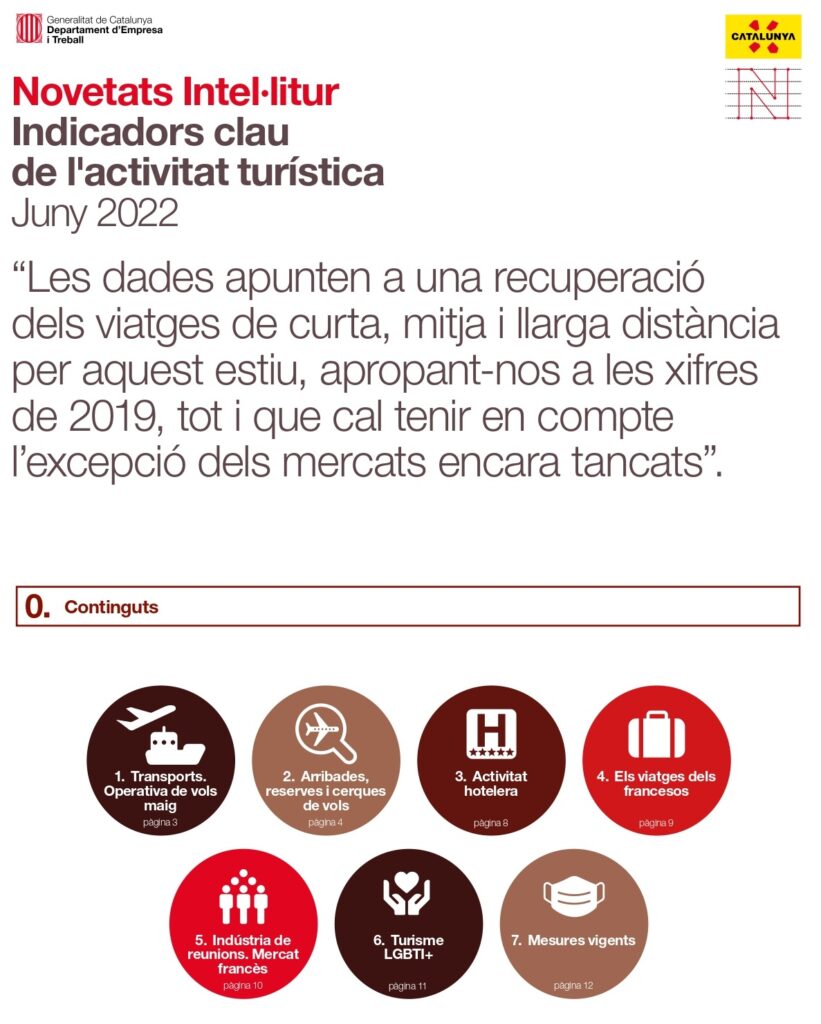 En la nova edició de l’informe Indicadors clau de l’activitat turística podreu comprovar que el turisme nacional tornarà a ser clau aquest estiu i que el marc actual, amb una situació econòmica poc alentidora i un conflicte bèl·lic actiu entre Rússia i Ucraïna, afavorirà a les destinacions properes i segures.