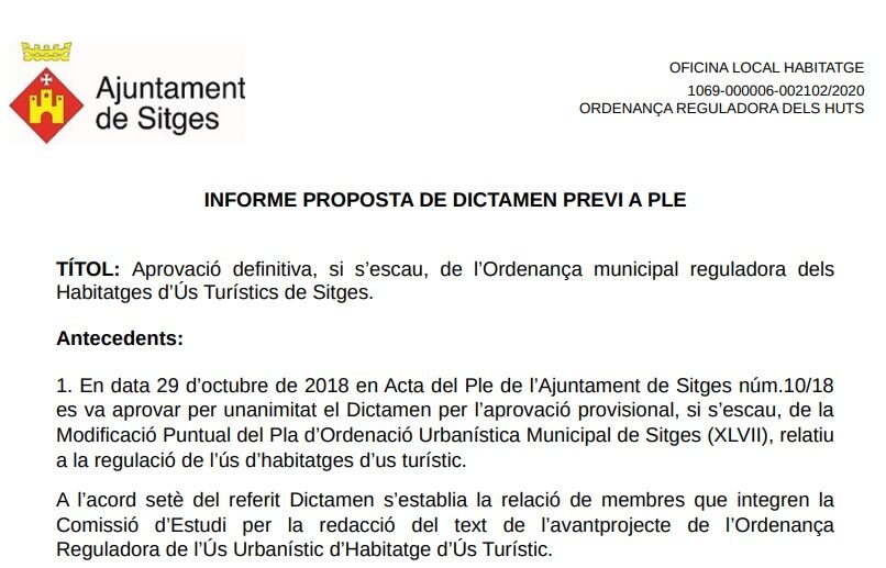 Recta final de l’Ordenança municipal reguladora dels Habitatges d’Ús Turístics de Sitges.