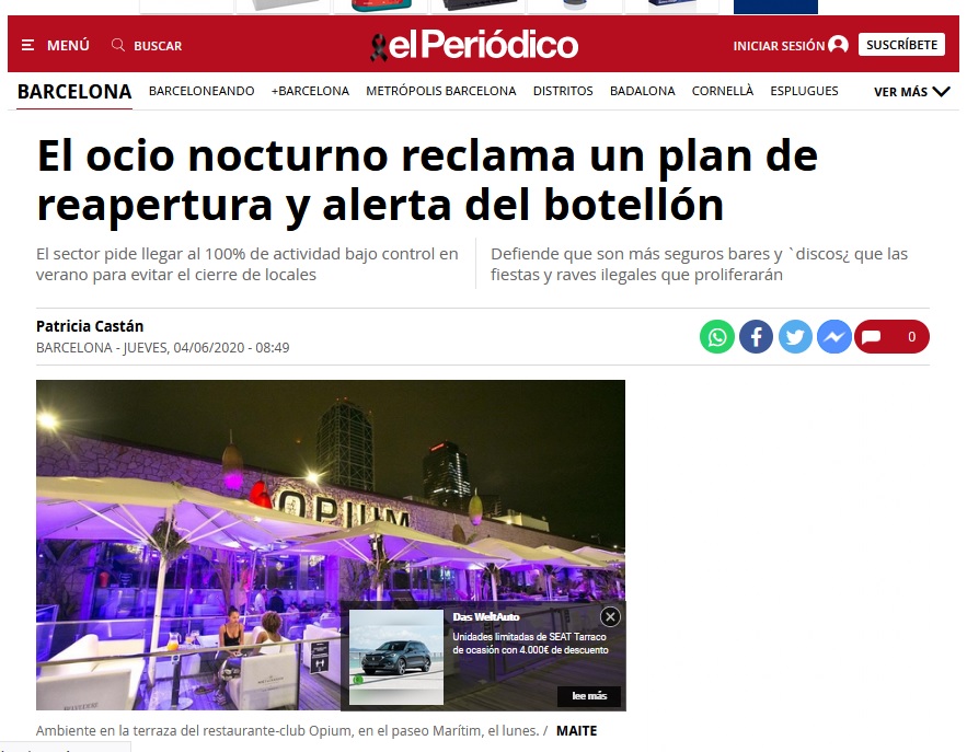 Si bé és cert, tal com publicava el diari El Periodico el 4 de June, que de no gestionar, acompanyar i ajudar a el sector de la nit, qualsevol municipi s’enfronta a que discoteques i bars musicals es facin al carrer, el botellón pugui ser una incomoda realitat diària amb l’impacte acústic, mediambiental i de seguretat que això pot comportar
