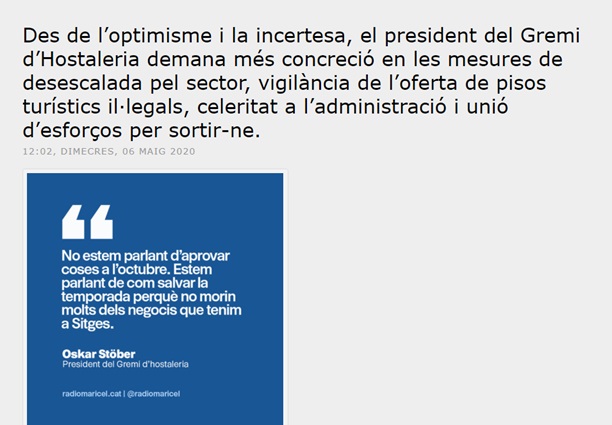 En la setmana de la fase 0 ó primera i la espera de anar a la Fase 1 o segona fase, Ràdio Maricelha compartit moments amb el primer sector econòmic de Sitges: el Turisme