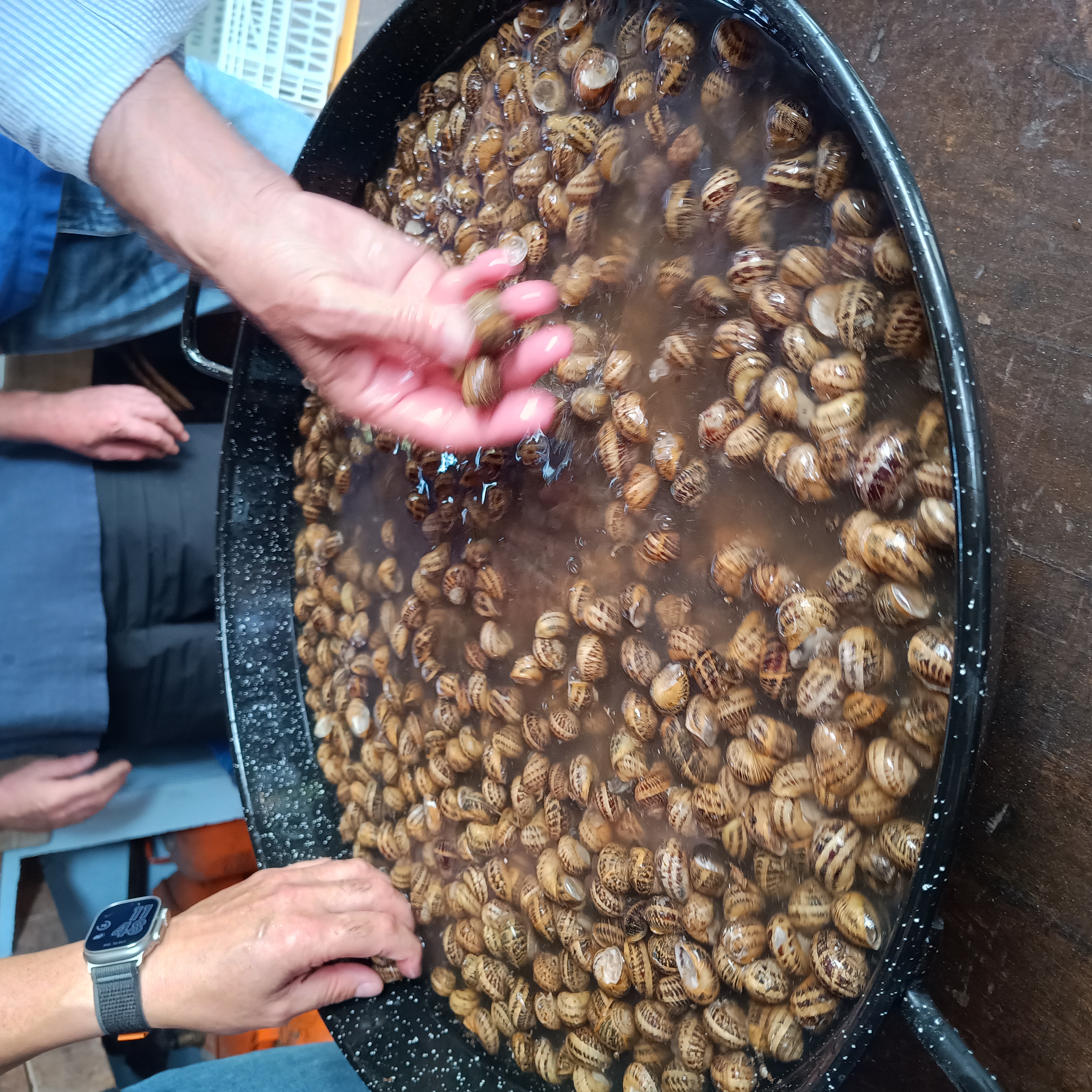 Després de la jornada de treball, van compartir elavoracions diferents de cargols de Lleida i diferents peixos senzills com la canana.