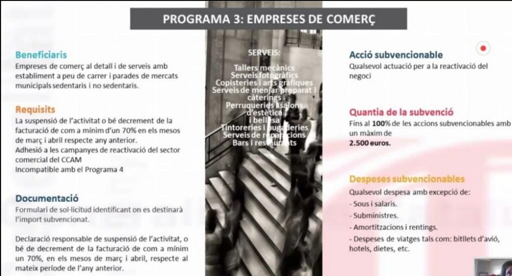 Seguint amb les informacions que ja hem anat publicant sobre diferents ajudes públiques i crèdits bancaris, adjuntem la informació sobre les properes ajudes que planteja la Generalitat de Catalunya des del Consorci de Comerç, Artesania i Moda de Catalunya per, entre d’altres, Bars i Restaurants.