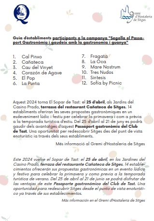 El 25 d’abril passat els 12 establiments van oferir les propostes gastronòmiques en un esdeveniment lúdic festiu gastronòmic per celebrar la primavera i com a prèvia a la temporada turística d’estiu.